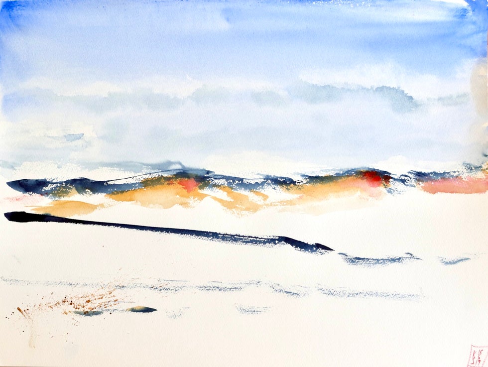 Thema dieser Serie ist es, zeitlose Landschaften zu malen. Wolken, Wasser und Licht thematisieren mit ihrer Flüchtigkeit den stetigen Wandel und die Substanzlosigkeit der Zeit. Dabei geht es nicht um eine unmittelbare Darstellung einzelner Landschaften, sondern um deren lichtdurchflutete, existenzielle Dimension.