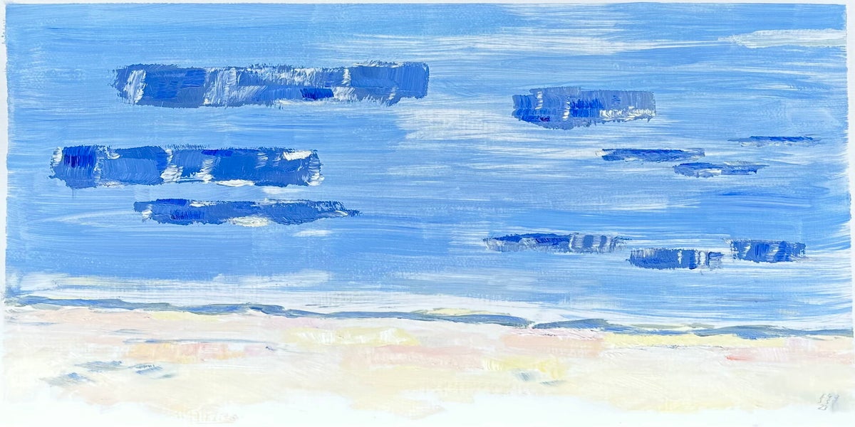 Die Wolken stehen für eine sich ständig verändernde Welt. Die Wolken warten auf niemanden. Jeder Augenblick wird von einem anderen abgelöst. Wir balancieren dazwischen auf dem schmalen Grat der Gegenwart zwischen dem „nicht mehr“ der Vergangenheit und dem „noch nicht“ der Zukunft.“